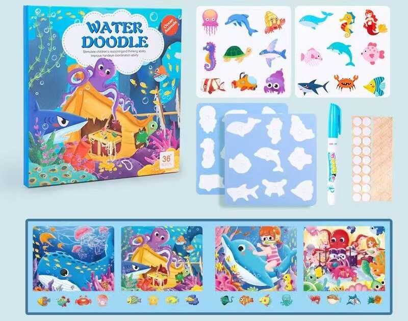 Логічна книжка C 75163 (80) океан, картки на липучках, водна розмальовка, водний маркер, сортер, в плівці