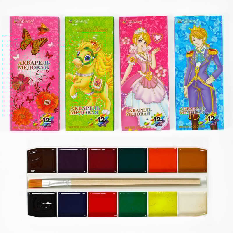 Акварельні фарби С 62067 (96) 12 кольорів, 4 види, ВИДАЄТЬСЯ ТІЛЬКИ МІКС ВИДІВ