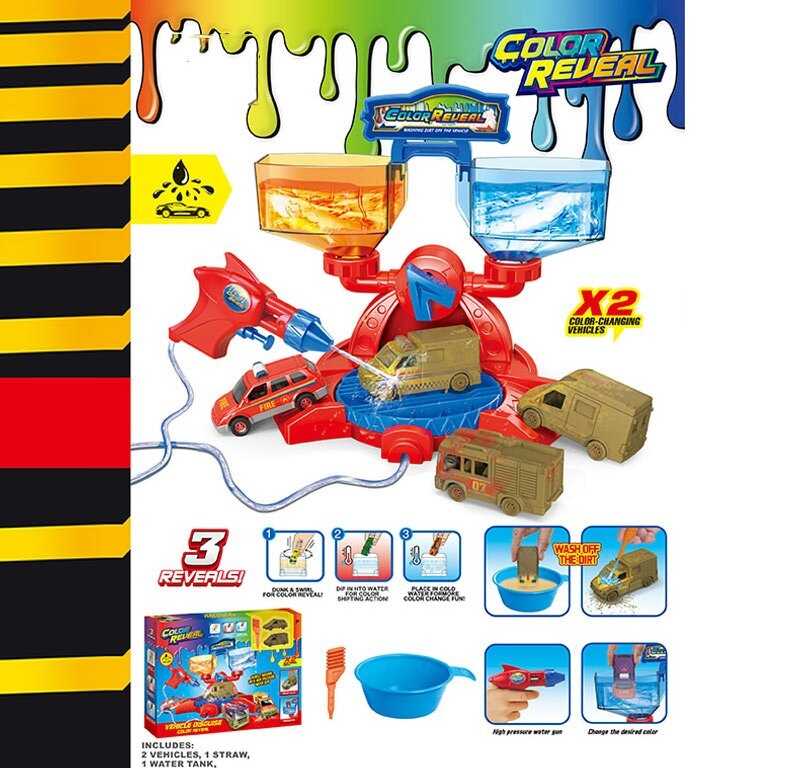Автомийка SK 772 X (36) 2 металопластикові машинки, змінюють колір, рухливі елементи, водяний пістолет, піпетка для водички, в коробці