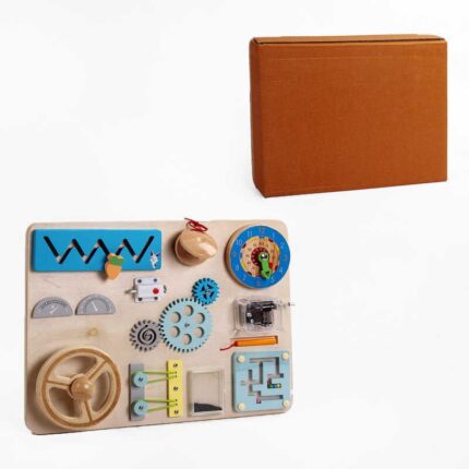 Бізіборд дерев'яний С 49417 (20) “Квартирки з тваринами”, 6 видів замочків, що відкриваються віконця, в коробці