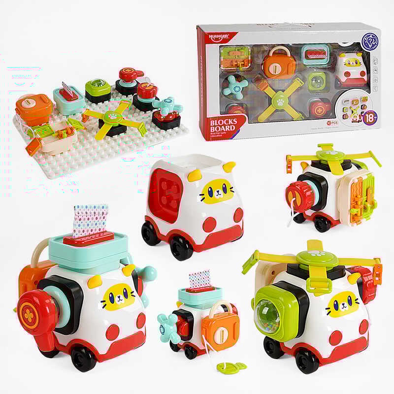 Бізіборд HE 8082 (12) 2 бізіборди, тріскачка, шестерні, брязкальце, пискавка, антистреси, в коробці