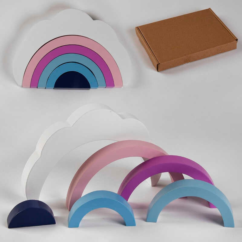 Головна Дерев'яні іграшки Дерев'яна Логіка С 47864 (42) пірамідка "Райдуга та хмаринка", 6 елементів, в коробці