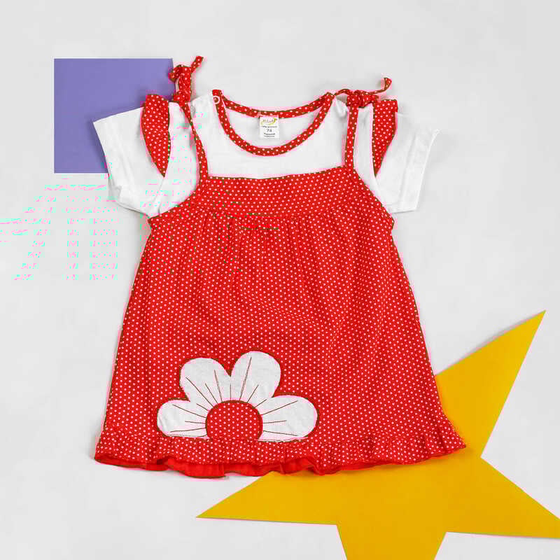 Головна Дитячий одяг Від 2-років гр КП-204 "1" /р.80/ / червоний / Комплект для дівчинки: сарафан на зав'язках, футболка