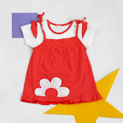 гр КП-204 "1" /р.80/ / червоний / Комплект для дівчинки: сарафан на зав'язках, футболка