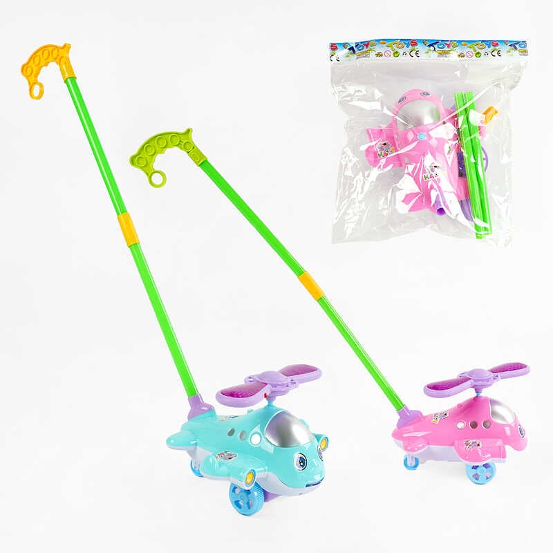 Каталка 198-12 А (96) "Вертоліт", 2 кольори, на батарейках, підсвічування лопатей, на палиці, з дзвінком, витягує язичок, в пакеті