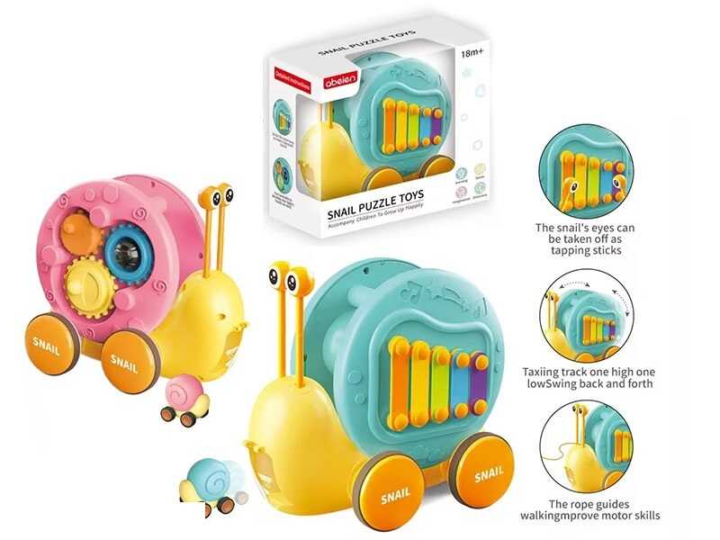 Каталка 58079 (16) 2 кольори, “Равлик”, ксилофон, запускач, пальчикова гра, брязкальце, в коробці