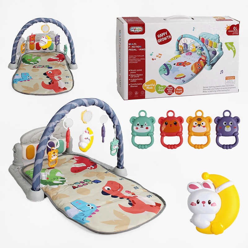 Головна Дитячі меблі Дитячі килимки Килимок 368-5 G (24) піаніно, мелодії, підсвічування, 5 підвісок, брязкальця, в коробці