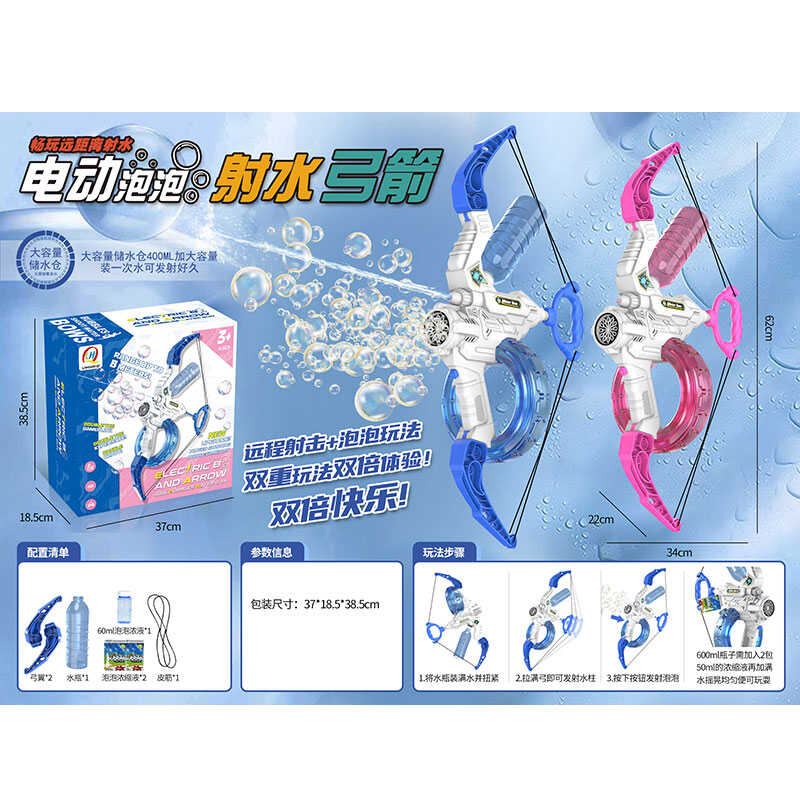 Лук 777-29 A (12) 2 кольори, 2 в 1, механічний водний пістолет, підсвітка, 2 балони, випускає мильні бульбашки, мильний розчин, в коробці
