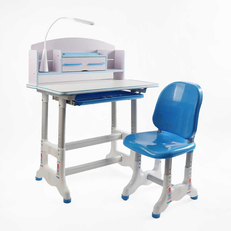 Парта дитяча зі стільчиком BL-14194 (1) колір синій, з полицями, регульована висота та нахил , з лампою, в коробці