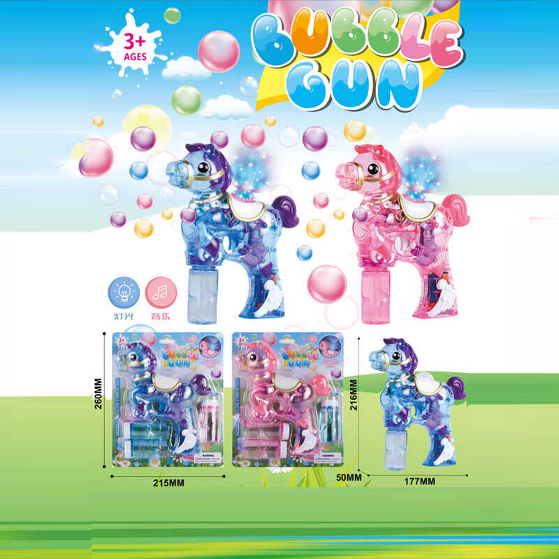 Пістолет з мильними бульбашками 667 (48/2) 2 кольори, “Поні”, автоматичний принцип, 3 пляшки мильного розчину, музика, підсвічування, на батарейках, на листі