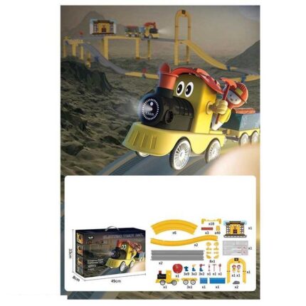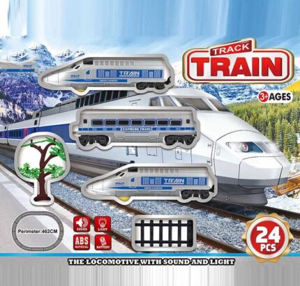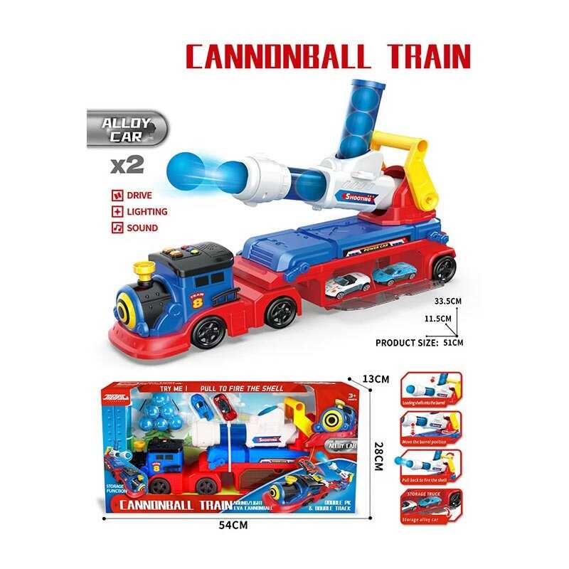 Потяг JP 588-34 A (12) звуки, підсвічування, 2 металопластикові машинки, механічна ракетниця з м’якими кульками, м’які кульки, на батарейках, в коробці