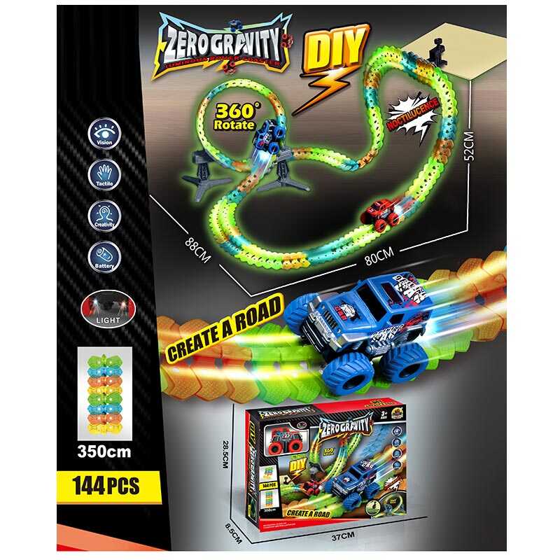 Трек GD 281 A (24) акумулятор 3.7 V, USB кабель, автоматичний принцип роботи, 2 корпуси машинки, 144 елементи, підсвічування, в коробці